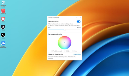 Al activar el modo «Descanso visual», vas a notar que la pantalla adquiere una tonalidad más cálida. Sin embargo, puedes ajustar la temperatura a tu preferencia, variando entre cálido y frío, pero siempre garantizando una experiencia de imagen óptima.