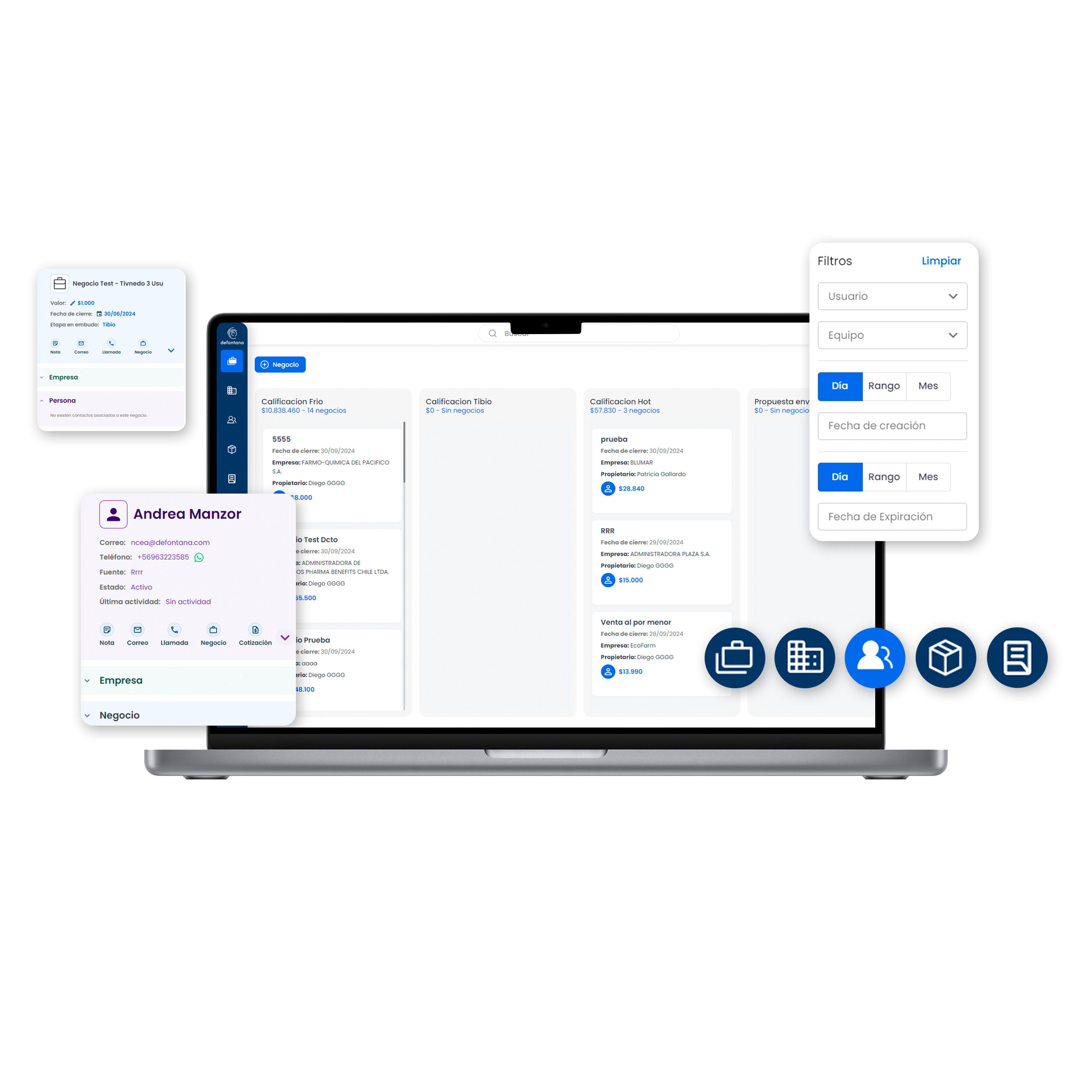 Se trata del nuevo sistema online Defontana CRM (Customer Relationship Management), pionero a nivel latinoamericano que permite mejorar su estrategia de negocio, incorporando tecnología aumentando así su eficiencia operativa, mejorando la toma de decisiones a partir de datos y fortalecer la experiencia del cliente.