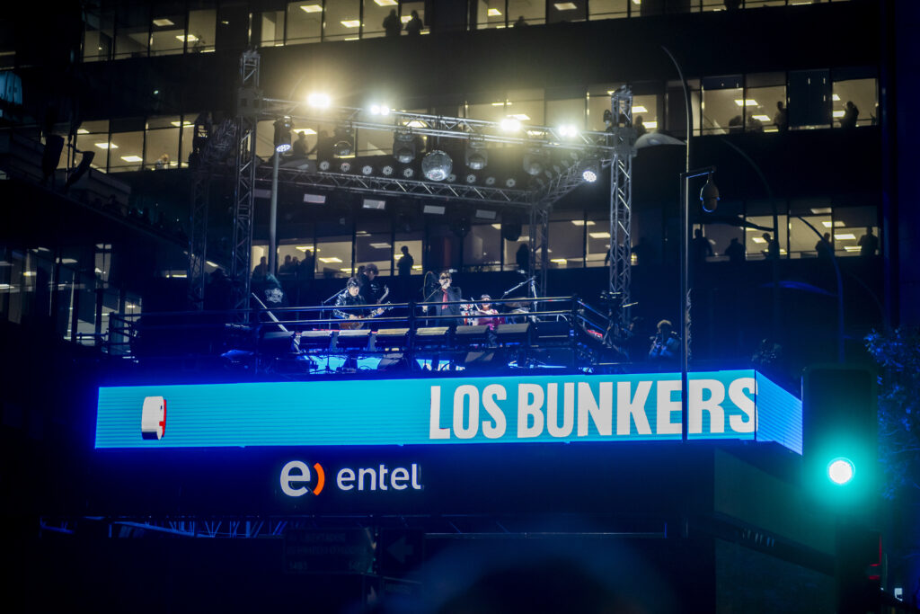 La intervención, que se realizó durante la tarde de este martes, comenzó dos días antes, cuando, a través de más de 1.200 pantallas digitales instaladas en diferentes puntos de Chile y el Metro de Santiago, se anunció que algo iba a pasar. La tensión y expectativa aumentó el lunes, cuando la renovada pantalla de la Torre Entel inició una cuenta regresiva y mostró el latido de un corazón. Apenas el reloj llegó a cero, los transeúntes fueron testigos de cómo la banda nacional, Los Bunkers, no solo estaba en la pantalla sino que en un escenario en la Plaza de las Telecomunicaciones, donde inició un show con su hit tributo “Ven Aquí”.