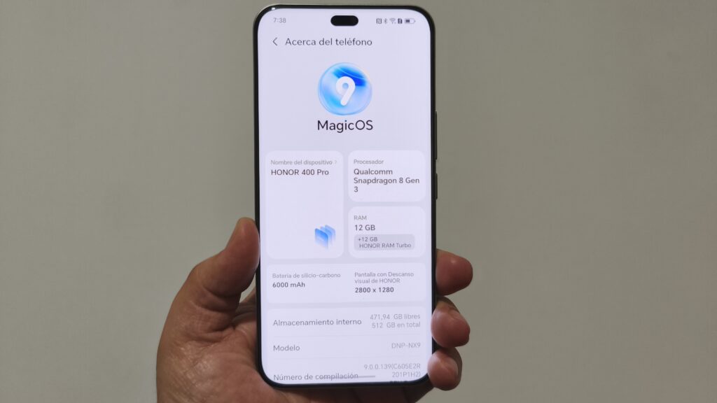 El HONOR 400 Pro está equipado con el Snapdragon 8 Gen 3, chipset insignia de Qualcomm (4 nm) que ofrece rendimiento fluido y potencia para IA, gaming y edición multimedia. Se acompaña de 12 GB de RAM LPDDR5X y 512 GB de almacenamiento, además de que cuenta con UFS 3.1 y soporta hasta 12 GB adicionales de RAM virtual.