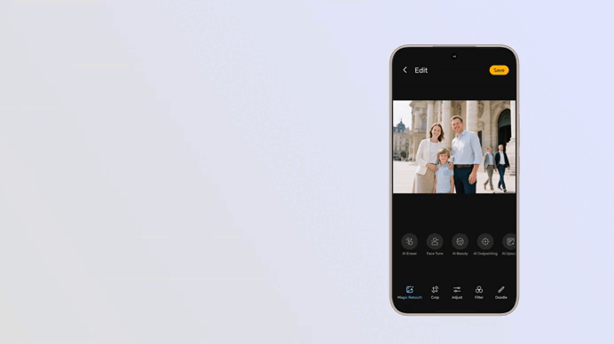 No se trata de alterar la realidad, sino de resaltar su belleza. Por eso, las funciones de edición con AI, como el Borrador AI o el Eliminador de Reflejos AI, están diseñadas para perfeccionar sin intervenir. Un turista en segundo plano desaparece sutilmente, un brillo no deseado se desvanece y la imagen conserva su autenticidad; porque la serie HONOR 400 entiende que viajar también es cuidar lo que se observa, sin perder detalle.