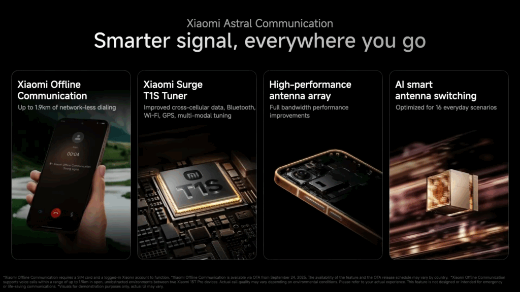 El Xiaomi 15T Pro funciona bajo HyperOS y añade funciones de inteligencia artificial como traducción en tiempo real, wallpapers dinámicos y asistentes de escritura. A nivel de conectividad, ofrece soporte para Wi-Fi 7, Bluetooth 6.0, NFC, infrarrojo y altavoces estéreo con Dolby Atmos. Además, estrena la tecnología Astral Communication, que promete mejorar la señal en todo tipo de escenarios, incluso permitiendo llamadas de voz sin cobertura tradicional en un radio de hasta 1,9 km (disponible mediante actualización OTA).
