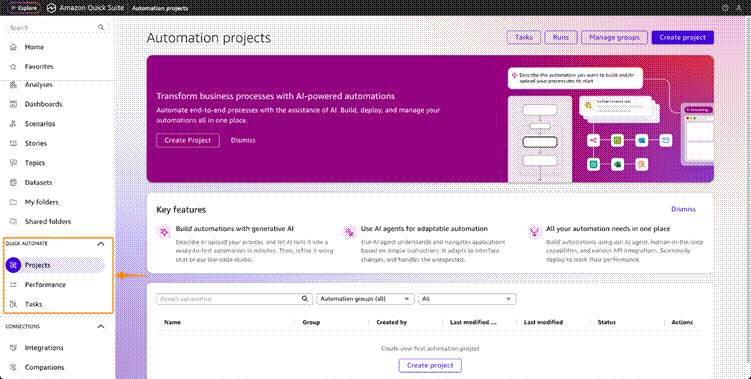Características clave de Amazon Quick Suite: